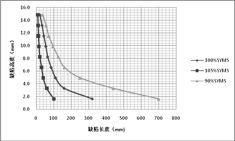 圖3 管道強度試驗壓力與容許缺陷的關(guān)系