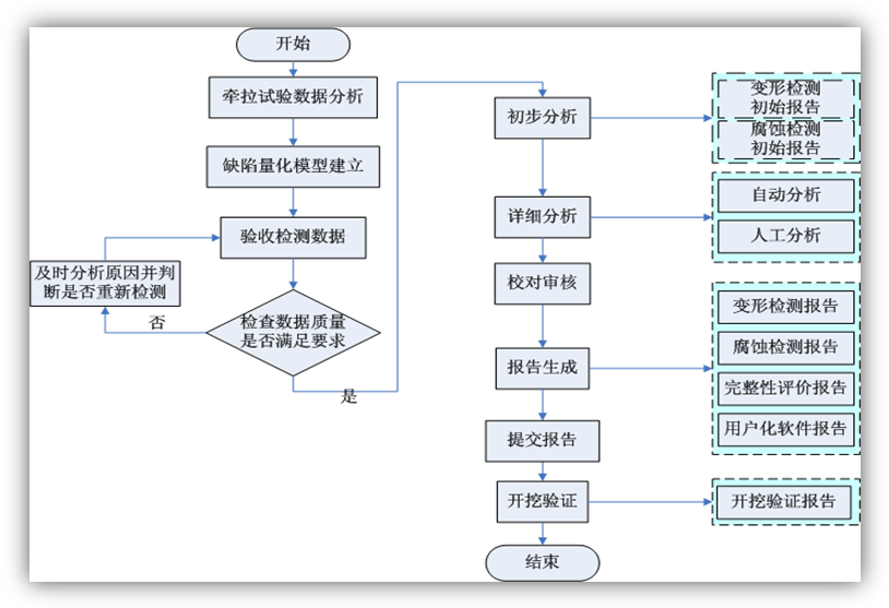 編制形成內(nèi)檢測報告,包括工程概述、統(tǒng)計、嚴(yán)重金屬損失信息、管道特征列表、地面標(biāo)記列表、完整性評價結(jié)果、開挖信息等。