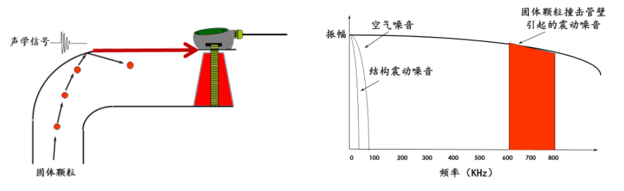 砂礫撞擊彎頭時會產(chǎn)生震動噪音,且噪音頻率遠(yuǎn)高于氣液介質(zhì)撞擊彎頭產(chǎn)生的噪音頻率。探頭在彎頭下游收集到高頻噪音后,將其轉(zhuǎn)換為電信號傳送給主機(jī),主機(jī)將電信號收集并計算出該點(diǎn)在測試時間內(nèi)通過的最少砂量,如圖3所示。