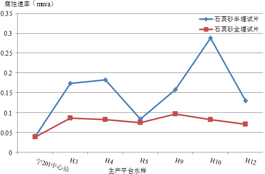 (3)試片在寧201中心站和H5排采平臺水樣中,均為中度腐蝕。
