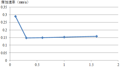 (1)當(dāng)轉(zhuǎn)速處于1 500 ~500 r/min,即反應(yīng)釜內(nèi)液體流速處于0.3 m/s~1.6 m/s時,試片的腐蝕速率基本沒有變化,腐蝕程度均為嚴(yán)重腐蝕,主要是電化學(xué)腐蝕和沖刷腐蝕的相互作用;