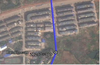 以管道樁號(hào)ZJ297+319處高后果區(qū)為例(圖 1、圖2)。安置小區(qū)后于管道建設(shè),管道中心線兩側(cè)有10棟7層住宅樓房,1樓為商鋪,管道中心線兩側(cè)200m范圍內(nèi)約600戶居民,300m范圍內(nèi)人口約2000人。按照《油氣輸送管道完整性管理規(guī)范》(GB 32167―2015)判斷,該高后果區(qū)為Ⅲ級(jí)高后果區(qū)。