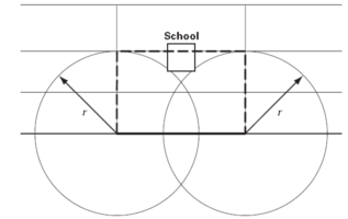 在管道上任一點(diǎn)以潛在影響半徑為半徑做圓,以此圓形所包圍的區(qū)域作為管道對(duì)兩側(cè)建筑物及人員傷害的最大范圍。當(dāng)圓形與邊緣建筑物相切時(shí),將圓心作為評(píng)價(jià)管段的邊緣,兩端圓心之間的距離為評(píng)價(jià)管段的長度(圖4)。潛在影響區(qū)域矩形寬為2r=272 m,潛在影響區(qū)域的面積為128 000 m2(12.8公頃);潛在影響區(qū)內(nèi)管道長度為470 m。