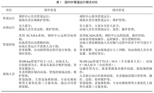 國(guó)內(nèi)外管道運(yùn)行模式對(duì)比如表 1所示。
