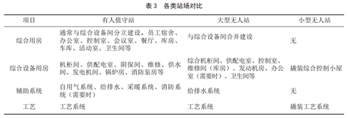 通過(guò)對(duì)現(xiàn)有各類(lèi)站場(chǎng)模式的對(duì)比(表 3),可以看出,無(wú)人值守站場(chǎng)用房用地均可得到簡(jiǎn)化,逐漸打破專(zhuān)業(yè)分工,電氣、自控、通信、陰保、暖通等設(shè)備可綜合設(shè)計(jì)與安裝。