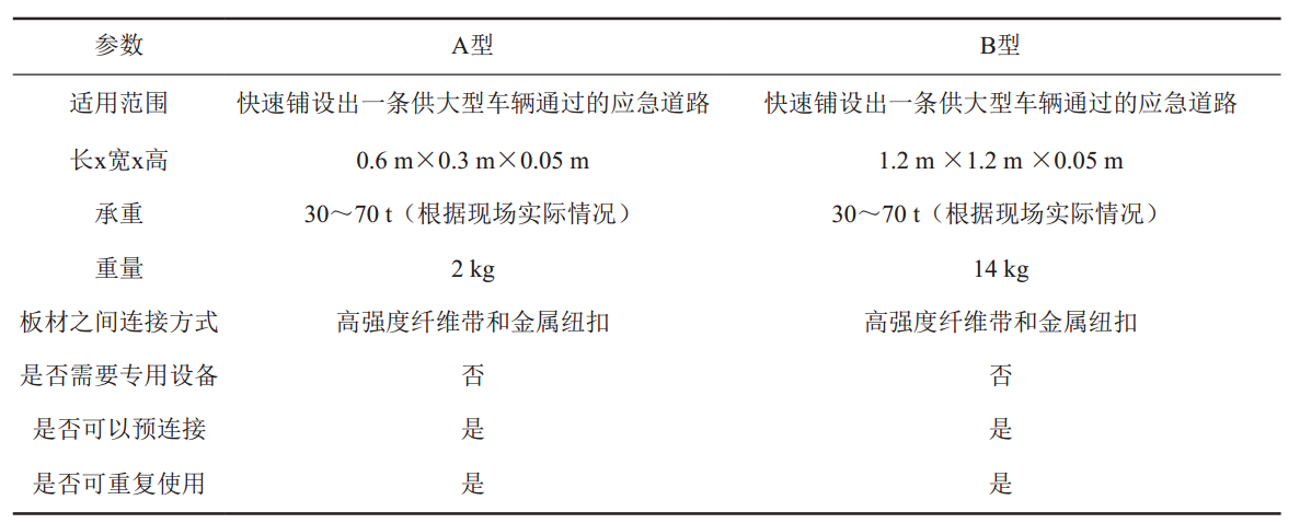 表 1 輕型復合材料快速鋪路板主要參數(shù)