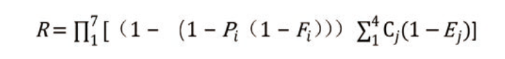 采用評(píng)分模型將P1至P7量化為0~1之間,表示發(fā)生概率。評(píng)分模型可以參考kent法的指標(biāo)體系,但必須進(jìn)行優(yōu)化。將F1至F7量化為0~1之間,表示防護(hù)措施的效果。從圖 2可以看出, P1至P7為邏輯或關(guān)系。將C1至C4量化為0~1之間,表示失效后果。 將E1至E4量化為0~1之間,表示應(yīng)急措施的效果。E1至E4為累計(jì)關(guān)系。這樣可以建立以下管道風(fēng)險(xiǎn)評(píng)價(jià)計(jì)算公式: