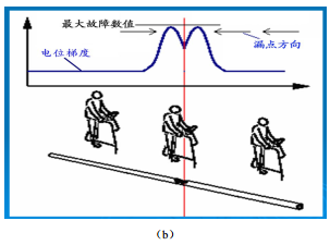 (4)目標(biāo)電纜測試,可以根據(jù)電流指示方向確定。若是目標(biāo)電纜,箭頭指示為電流來的方向即指向發(fā)射機(jī)方向,反之箭頭指示將背向發(fā)射機(jī)。存在干擾區(qū)域,可以使用此方法進(jìn)行驗(yàn)證。