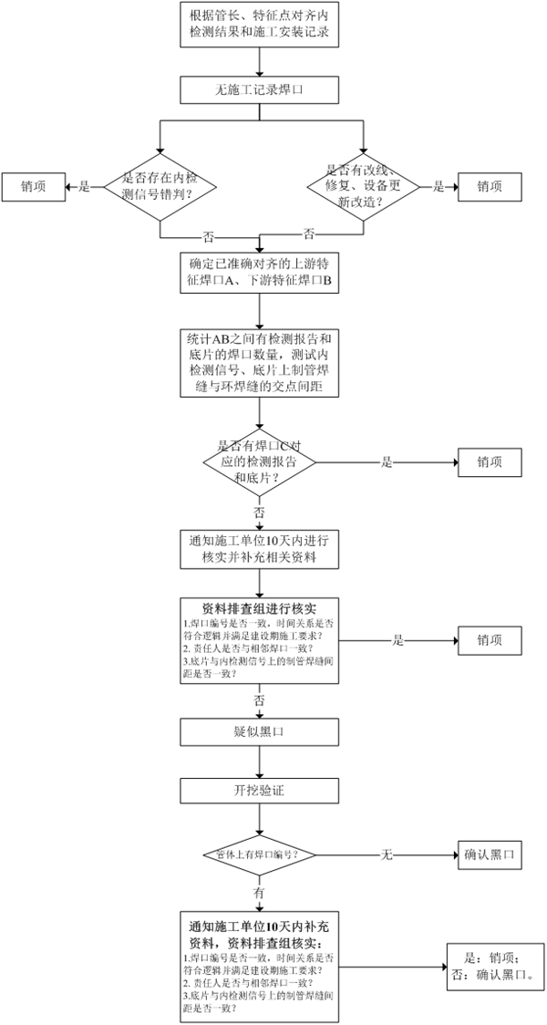 疑似黑口存在很大安全風(fēng)險(xiǎn),需要企業(yè)花費(fèi)大量人力、物力進(jìn)行排查,降低其對(duì)管道安全的影響。通過(guò)資料收集、數(shù)據(jù)對(duì)齊、信息提取、開(kāi)挖驗(yàn)證等技術(shù)手段,準(zhǔn)確識(shí)別疑似黑口,進(jìn)而采取措施以保障管道本體安全。