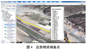 (2)應(yīng)急管理。描述管線周邊應(yīng)急物資儲備點具體位置,以及儲存應(yīng)急物資種類和具體數(shù)量,以便管道沿線發(fā)生泄漏,選擇最佳、最近應(yīng)急物資儲備點,選取應(yīng)急搶險所需物資,為應(yīng)急搶險爭取時間,提高應(yīng)急搶險效率。某應(yīng)急物資儲備清單見下圖 4。