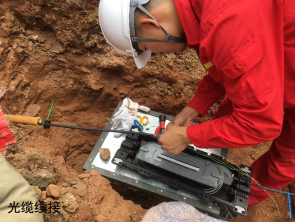 光纜施工順序為:管道施工單位細土(或細土沙袋)鋪底填平→輸氣管道下溝→通信施工清溝→光纜下溝→通信施工小回填或墊壓細土袋穩(wěn)固硅芯管→輸氣管道大回填→設立通信標石。