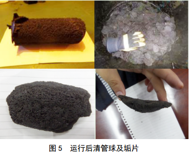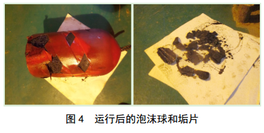 2018年,中海油位于渤海的某條33.3 cm(10寸)海管在通球作業(yè)過程中出現(xiàn)泡沫鋼刷球破損并清出大量雜質(zhì)垢片,因垢量堆積過大導(dǎo)致卡堵,清管作業(yè)被迫中止。北京蒂川國際貿(mào)易有限公司在接到咨詢后,與英國制造商共同調(diào)研分析,決定采用智能泡沫電子幾何檢測設(shè)備對該條海管進(jìn)行檢測作業(yè),評估管道內(nèi)存在的變形和垢片的體積及分布情況。本次檢測共通球8次,包括常規(guī)泡沫清管器,智能泡沫電子幾何檢測器模擬體和智能泡沫電子幾何檢測器。發(fā)現(xiàn)海管的前3.5 km結(jié)垢嚴(yán)重,平均厚度在15 mm左右,最小內(nèi)徑點(diǎn)位于發(fā)球端的第一個彎頭內(nèi),內(nèi)徑最小值為160 mm(圖 3)。整個清管作業(yè)結(jié)束后,泡沫清管器球體完整,未有明顯破損,垢片量較少(圖 4、 5)。