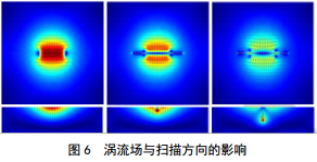 切向渦流陣列TECA線圈的布置改善了表面裂紋失效缺陷的響應,渦流EC方向垂直于掃描方向,渦流場繞過其周圍貼近縱向裂縫,直接受表面破裂及其尺寸的影響,如圖 6和圖 7所示。