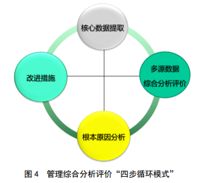 總結(jié)出常用內(nèi)檢測技術(shù)的優(yōu)缺點和適用范圍。深度挖掘內(nèi)檢測數(shù)據(jù),一方面重新審查以往的內(nèi)檢測報告是否有漏報缺陷,例如第一輪在此處發(fā)現(xiàn)11%金屬損失缺陷,第二輪在此位置沒有報告缺陷,不能直接判斷第二輪沒發(fā)現(xiàn)缺陷。另一方面根據(jù)兩輪內(nèi)檢測報告,發(fā)現(xiàn)管道缺陷的增長情況(含腐蝕和凹坑),例如對于29%缺陷信號,第一輪未檢出,而第二輪檢出,說明此處是新腐蝕點,可據(jù)此計算腐蝕速率,并在具體的管段上畫出缺陷的分布圖。根據(jù)此項技術(shù)研究與實踐,提出管理綜合分析評價“四步循環(huán)模式”(圖 4),利用管道的大數(shù)據(jù)充分挖掘潛在信息,分析其產(chǎn)生的根本原因并提出改進(jìn)措施。