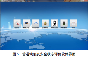 管道缺陷評價技術(shù)是確定管道維護(hù)方案的科學(xué)依據(jù)[7]。針對管道的體積類缺陷、幾何變形類及復(fù)合類缺陷,調(diào)查研究國內(nèi)外已有缺陷評價標(biāo)準(zhǔn)的適用性范圍及適用性,編制了一套管道缺陷評價技術(shù)規(guī)定文件及缺陷評估理論手冊,包括腐蝕、幾何凹坑、凹坑+腐蝕、機械劃傷缺陷評價,同時也包括重車碾壓管道、管道懸空、特殊地段(穿越公路、鐵路)管道等的單項安全評價。開發(fā)了管道缺陷及安全狀態(tài)評價軟件(圖 5),可對以上各種類型的缺陷及特殊狀況進(jìn)行評價,根據(jù)評價結(jié)果對管道的缺陷修復(fù)給出建議。