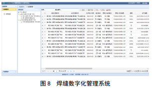 為方便查詢和調(diào)用,根據(jù)各焊口編號,進行焊縫編碼的同時進行數(shù)據(jù)庫的建設(shè),其主要包括以下各支線無損檢測報告、復評數(shù)據(jù)統(tǒng)計、數(shù)字化掃描結(jié)果、識別評價分析報告等。圖 8所示為焊縫數(shù)字化管理系統(tǒng)。