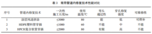 3.2 常用管道內(nèi)修復(fù)技術(shù)性能分析