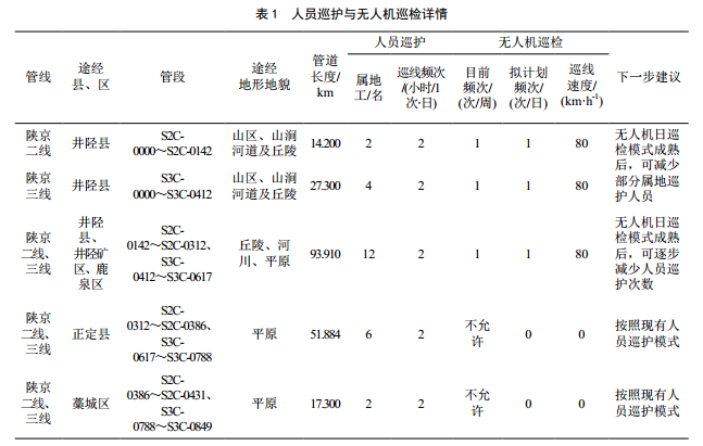 陜京管道石家莊處石家莊作業(yè)區(qū),管轄陜京二線、三線管道總長204.6 km,途經(jīng)山西盂縣,河北省井陘縣、井陘礦區(qū)、鹿泉區(qū)、正定縣、藁城區(qū);其中轄區(qū)翻山地段約40 km,主要分布于井陘縣地段,其他地段以丘陵、河川、平原為主。目前管道巡護(hù)執(zhí)行屬地巡護(hù)外包與作業(yè)區(qū)巡查結(jié)合的方式。長期以來管道管理囿于“點(diǎn)”“線”思路和“5 m”范圍界限,對周邊自然環(huán)境、地方經(jīng)濟(jì)發(fā)展等信息采集缺乏有效手段,管理數(shù)據(jù)收集分析利用不足,已難以適應(yīng)管道安全和公共安全的需要;同時人工巡線成本逐年提高,創(chuàng)新管道巡控模式勢在必行。