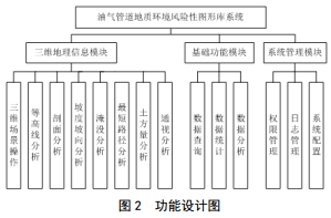 系統(tǒng)功能主要包括三維地理信息模塊、基礎(chǔ)功能模塊、系統(tǒng)管理模塊,實(shí)現(xiàn)三維場(chǎng)景操作、統(tǒng)計(jì)分析、地質(zhì)環(huán)境信息查詢(xún)統(tǒng)計(jì)等功能。見(jiàn)圖 2。