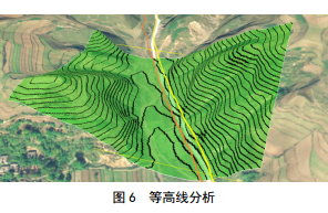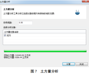 用戶(hù)通過(guò)在三維場(chǎng)景中畫(huà)多邊形的方式生成任意區(qū)域的等高線數(shù)據(jù),可以隨意調(diào)整等高距而得出不同的等高線圖,并可將系統(tǒng)分析得出的等高線圖以矢量數(shù)據(jù)的形式導(dǎo)出。土方量分析功能是用戶(hù)修改地形(挖方或者填方),系統(tǒng)自動(dòng)計(jì)算出挖方或者填方的體積。見(jiàn)圖 6、圖 7。