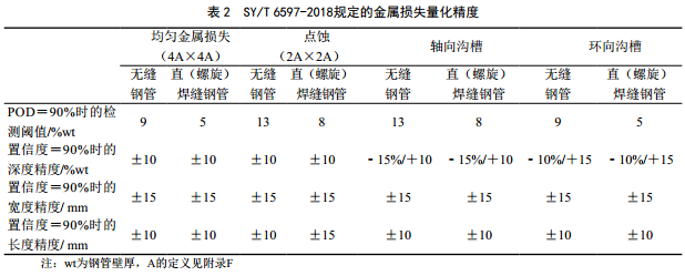 匹配缺陷是指在同一位置,兩次內(nèi)檢測(cè)都報(bào)告了缺陷,但存在內(nèi)、外區(qū)分和深度量化差別。如缺陷深度尺寸,不僅出現(xiàn)深度增加,還可能出現(xiàn)深度“減小”。而缺陷不會(huì)真的變淺,主要是由誤差導(dǎo)致的。內(nèi)檢測(cè)報(bào)告的深度量化精度通常由一定置信度下的容差給出, SY/T 6597―2018《油氣管道內(nèi)檢測(cè)技術(shù)規(guī)范》規(guī)定,對(duì)于均勻金屬損失和點(diǎn)蝕, 90%置信度下的容差為10% wt。在這一范圍內(nèi)的缺陷深度,都符合標(biāo)準(zhǔn)規(guī)定(表 2)。