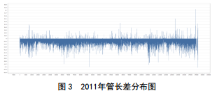 分析對(duì)齊段內(nèi)的管長(zhǎng)差, 2011年內(nèi)檢測(cè)報(bào)告的管長(zhǎng)差大,如圖 3所示。