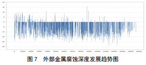 對(duì)于匹配的金屬損失,可以計(jì)算兩次內(nèi)檢測(cè)的深度差,除以?xún)纱蝺?nèi)檢測(cè)的時(shí)間差進(jìn)而計(jì)算腐蝕增長(zhǎng)速率。對(duì)于新增的金屬損失,假設(shè)這些金屬損失位置腐蝕從第一次內(nèi)檢測(cè)結(jié)束開(kāi)始發(fā)展到第二次內(nèi)檢測(cè),由第二次內(nèi)檢測(cè)金屬損失的深度除以時(shí)間差,可以計(jì)算腐蝕增長(zhǎng)速率。