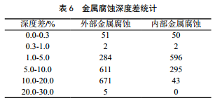 內(nèi)檢測(cè)報(bào)告的腐蝕深度存在一定誤差,僅根據(jù)一次內(nèi)檢測(cè)結(jié)果計(jì)算腐蝕增長(zhǎng)速率和剩余壽命,得到的 結(jié)果就會(huì)有較大的誤差,特別是對(duì)于較新的管道,因?yàn)檫@些管道內(nèi)檢測(cè)報(bào)告的金屬損失往往可能是不隨時(shí)間發(fā)展的管材缺陷或者是投產(chǎn)前在鋼管存放或者試壓期間產(chǎn)生的腐蝕。