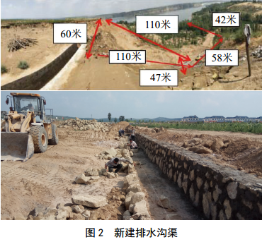 (3)將下方坍塌處使用素土回填,并設(shè)置排水渠,與原有排水渠相連。