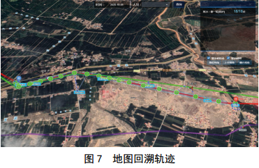 (3) 歷史記錄。系統(tǒng)以天為單位記錄巡檢人員軌跡,可按時間查詢和歷史回放巡檢路線軌跡(圖 7)。展示站隊、班組、班次、已巡、應(yīng)巡、開始時間、結(jié)束時間、平均速度、超范圍點數(shù)、超速點數(shù)等歷史任務(wù)數(shù)據(jù)。