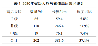 2020年,共識別出高后果區(qū)202處,合計長度381.6 km,占已投產(chǎn)運營管道的37.1%,詳情見表 1。