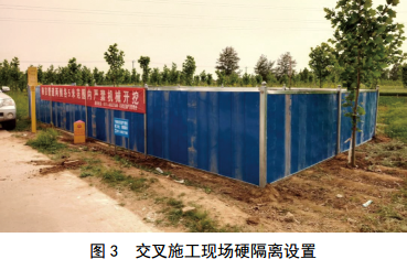 (3)一級硬隔離布控。安全邊界采用鋼管腳手架圍欄或彩鋼板圍擋等設置劃定隔離,隔離上沿距離地面高度不低于2 m,顏色為藍色或紅色(圖 2)。現場搭設看護帳篷和監(jiān)控攝像等人防、技防設施(圖 3)。