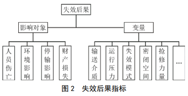 失效后果一級(jí)指標(biāo)主要包括環(huán)境影響、人員傷亡、財(cái)產(chǎn)損失、停輸影響,如圖 2所示。