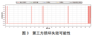 馬 仙 輸 氣 管 道 自 投 產(chǎn) 以 來(lái) 未 發(fā) 生 過(guò) 第 三方施工活動(dòng)。管道第三方損壞失效可能性分值0.0 294~0.1 176,評(píng)價(jià)結(jié)果如圖 3所示,紅色折線代表第三方損壞指標(biāo)導(dǎo)致的失效可能性。