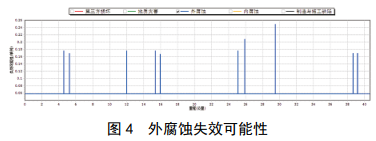 可以看出,管道全線大部分管段失效可能性由外腐蝕、內(nèi)腐蝕和制造與施工缺陷三項(xiàng)指標(biāo)主導(dǎo)。