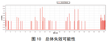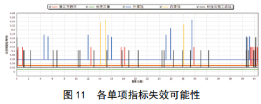 上述分析結(jié)合RiskScoreTP管道風(fēng)險(xiǎn)評(píng)價(jià)軟件計(jì)算結(jié)果,得出馬仙輸氣管道總體失效可能性及各單項(xiàng)指標(biāo)失效可能性如圖 10、圖 11所示。