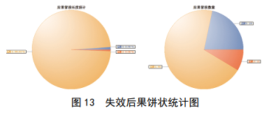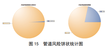失效后果餅狀統(tǒng)計(jì)圖如圖 13所示,左側(cè)為按管道長(zhǎng)度統(tǒng)計(jì)、右側(cè)為按管段數(shù)量統(tǒng)計(jì)。管道失效后果分為1~5級(jí),從低到高分別表示輕微影響、一般影響、較大影響、重大影響及特別重大影響,統(tǒng)計(jì)結(jié)果顯示馬仙輸氣管道失效后果分級(jí)為1級(jí)98.44%, 2級(jí)0.58%, 3級(jí)0%, 4級(jí)0%, 5級(jí)0.98%。