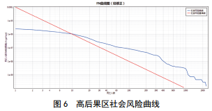 傷亡10人以上的社會風(fēng)險處于不可接受區(qū)域內(nèi),傷亡100人以上的社會風(fēng)險概率為1E-7.2/a,大于社會 風(fēng)險概率1E-8/a的要求,如圖 6所示。