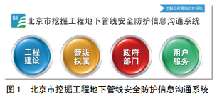 (1)建立挖掘工程地下管線安全防護(hù)機(jī)制。北京市于2011年9月1日開(kāi)始建立挖掘工程地下管線安全防護(hù)機(jī)制(圖 1),實(shí)施至今已通過(guò)該系統(tǒng)第一時(shí)間獲取高后果區(qū)內(nèi)第三方規(guī)劃、施工信息300余起,及早與政府規(guī)劃等部門積極溝通,力爭(zhēng)避免形成高后果區(qū),提前與建設(shè)(施工)單位及時(shí)對(duì)接,有效預(yù)防管道各類事故的發(fā)生。