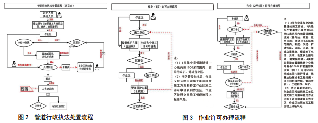 (2)建立管道保護(hù)行政執(zhí)法工作機(jī)制。北京市城市管理綜合行政執(zhí)法局和北京市城市管理委員會(huì)聯(lián)合下發(fā)《石油天然氣管道保護(hù)行政執(zhí)法工作意見(jiàn)(試行)》的通知,從制度上為管道執(zhí)法部門提供執(zhí)法依據(jù)和工作流程,為管道企業(yè)提供外部救援工作機(jī)制(圖 2)。