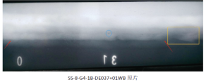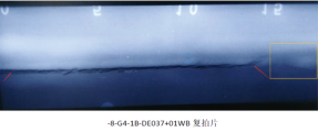 (1)復(fù)拍片出現(xiàn)裂紋的位置(兩個(gè)紅色箭頭中間的位置)在原片中未發(fā)現(xiàn)缺陷。