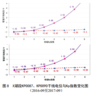 (4)當(dāng)Kp指數(shù)為8時(shí),輸氣管道KP0087、KP0090處于欠保護(hù)狀態(tài)。