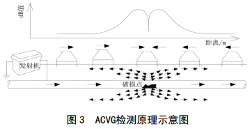埋地管道外防腐層破損點(diǎn)檢測一般采用交流電位梯度法(Alternating Current Voltage Gradient,ACVG),檢測原理如圖 3所示。拆除接地裝置后,檢測出的異常也可能是干擾信號(hào),僅作為參考[5]。當(dāng)無法實(shí)施ACVG檢測時(shí),因埋地管道敷設(shè)環(huán)境、施工條件相似,采取開挖抽查直接檢測,基本能反映防腐層的狀況。