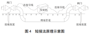 受接地網(wǎng)、相鄰管道、電纜、用電設(shè)備的影響,站場內(nèi)埋地管道的定位存在很多困難,采用“短接法”可以提高其定位精度[6]。但需要注意,當(dāng)接地網(wǎng)產(chǎn)生的回路電阻小于埋地管道形成的回路,需要斷開接地回路,否則“短接法”定位的為接地網(wǎng)的位置,如圖 4所示。