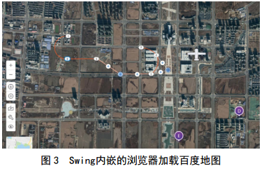 Swing是一個用于開發(fā)Java應(yīng)用程序用戶界面的開發(fā)工具包。與傳統(tǒng)圖像界面框架相比,它具有開發(fā)高效性、功能穩(wěn)定性、平臺兼容性等顯著優(yōu)勢。在無人機(jī)執(zhí)行任務(wù)的過程中,需要實時監(jiān)測和控制飛機(jī)的位置、三姿、傳感器、機(jī)載狀態(tài)等信息,利用Swing調(diào)用BaiduMap API可以輕松地實現(xiàn)這些功能。通過BaiduMap COM接口,將百度地圖接入到Swing應(yīng)用平臺上,結(jié)合JavaScript實現(xiàn)對百度地圖的交互控制,利用在Swing框架嵌入瀏覽器的方式融入html頁面資源,在該頁面使用JS 調(diào)用BaiduMap API,從而實現(xiàn)Java與百度地圖的數(shù)據(jù)交互。