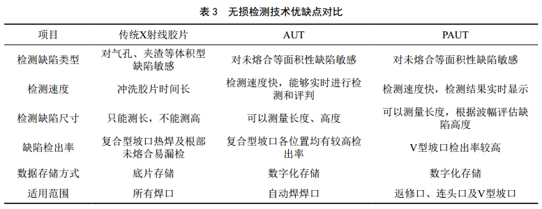 3.3 無損檢測技術(shù)優(yōu)缺點(表 3)