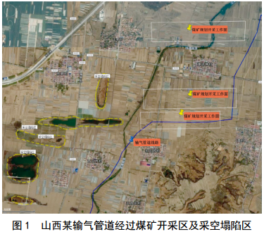 山西省因采煤形成63億立方米的采空區(qū),面積達(dá)5 115 km2,引發(fā)的地表沉陷面積達(dá)2 978 km2,對(duì)區(qū)域內(nèi)生態(tài)環(huán)境造成非常嚴(yán)重的破壞。全省近年來(lái)積極推進(jìn)“氣化山西”建設(shè),輸氣管網(wǎng)覆蓋了90多個(gè)縣區(qū)。密集的長(zhǎng)輸管線的規(guī)劃、建設(shè)及運(yùn)營(yíng)在時(shí)間與空間上與煤礦開采和規(guī)劃發(fā)生重疊相交。因采空塌陷區(qū)內(nèi)輸氣管道的防護(hù)而投入的費(fèi)用每年以千萬(wàn)計(jì),給企業(yè)的生產(chǎn)運(yùn)營(yíng)及安全管理帶來(lái)嚴(yán)重影響(圖 1)。