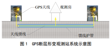 GPS形變監(jiān)測系統(tǒng)由GPS天線、觀測房以及天線饋線系統(tǒng)組成,如圖 1所示。