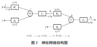 BP神經(jīng)網(wǎng)絡(luò)法可以描述多因素之間的非線性關(guān)系,且具有很強(qiáng)的非線性映射能力和強(qiáng)大的自學(xué)習(xí)能力,可映射任意復(fù)雜的非線性關(guān)系。BP算法由兩部分組成,可概括為:信息的正向傳播與誤差的反向傳播。在正向傳播過程中,輸入的信息從輸入層經(jīng)過隱含層逐層計算傳向輸出層,若在輸出層沒有得到預(yù)期輸出,則此時計算出輸出層的誤差變化值,然后進(jìn)行反向傳播,將誤差信號沿原來的連接通路反傳回來,并修改各層神經(jīng)元的權(quán)值,直到達(dá)成期望目標(biāo)(圖 2)。