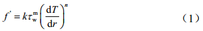 為徑向溫度梯度,℃/mm;k、m、n為常數(shù),需要通過實驗確定。相應(yīng)的蠟沉積速率計算公式為: